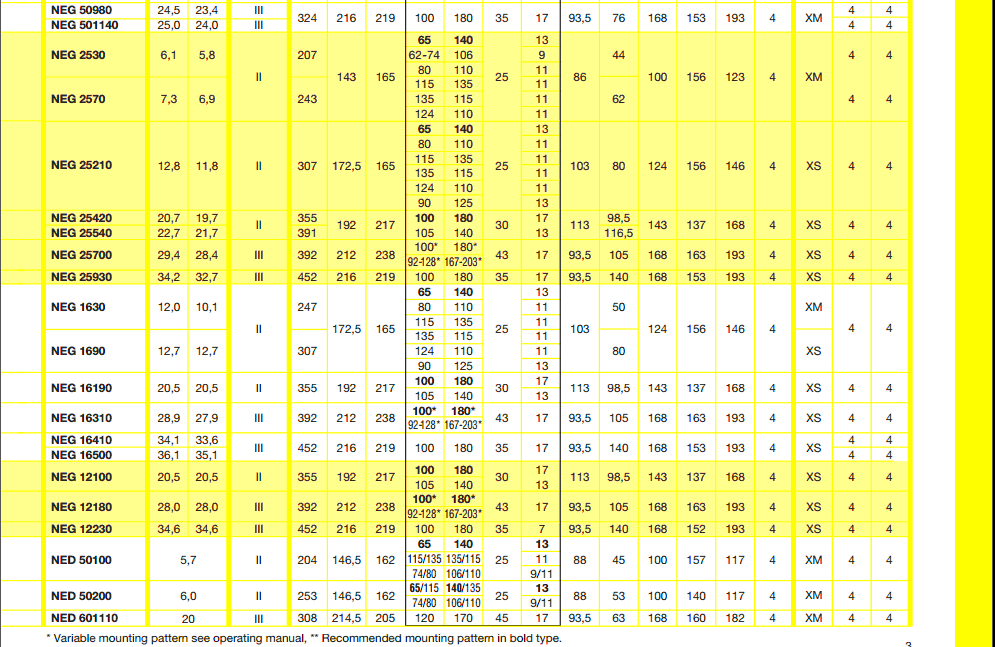 NEG50550、NEA50550.NEG50770、NEG50980、NEG501140、NEG2530、NEG2570、NEG25210、NEG25420、NEG25540、NEG25700、NEG25930、NEG1630