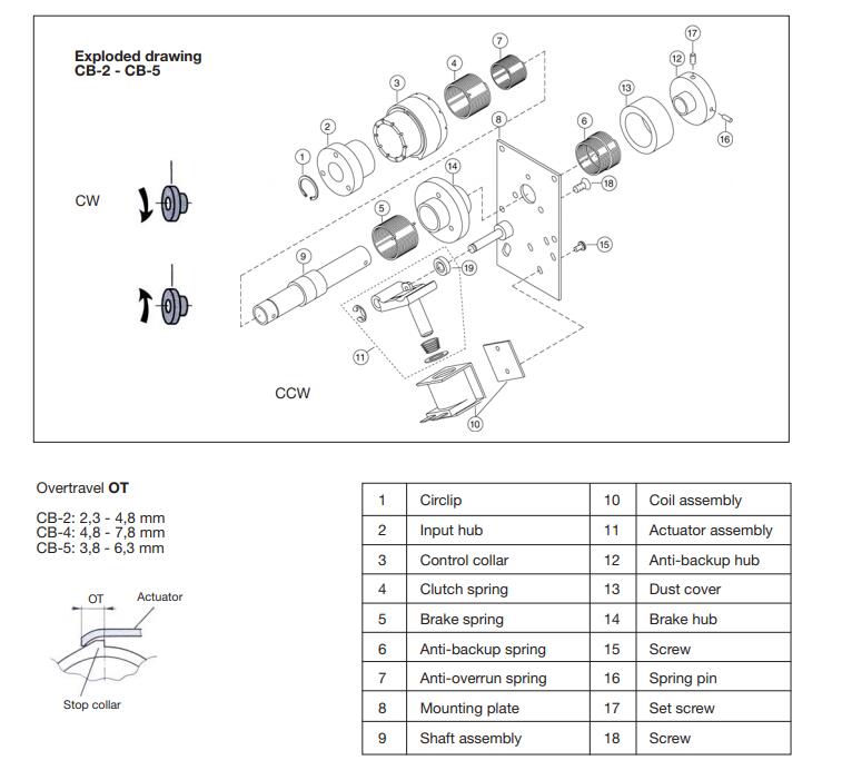 所有CB单元通常都配有防超限弹簧(7)。如果不需要防超限弹簧,例如